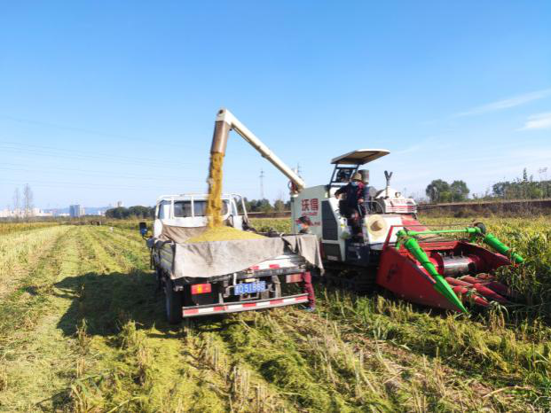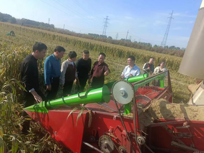 为进一步提升谷子、高粱、大豆等小杂粮作物的机械化水平,减少传统谷物收获机械在进行杂粮收获时的收获损失,填补杂粮作物专用收获机的市场空白,长治市农机综合服务中心与长治市神禾永成农机科技开发有限公司共同研制开发了4LZ-5型杂粮籽粒收获专用割台。为检验割台作业性能,2023年10月9日,农机服务中心组织技术人员前往堠北庄镇神夏村进行了50余亩谷子机收试验。
