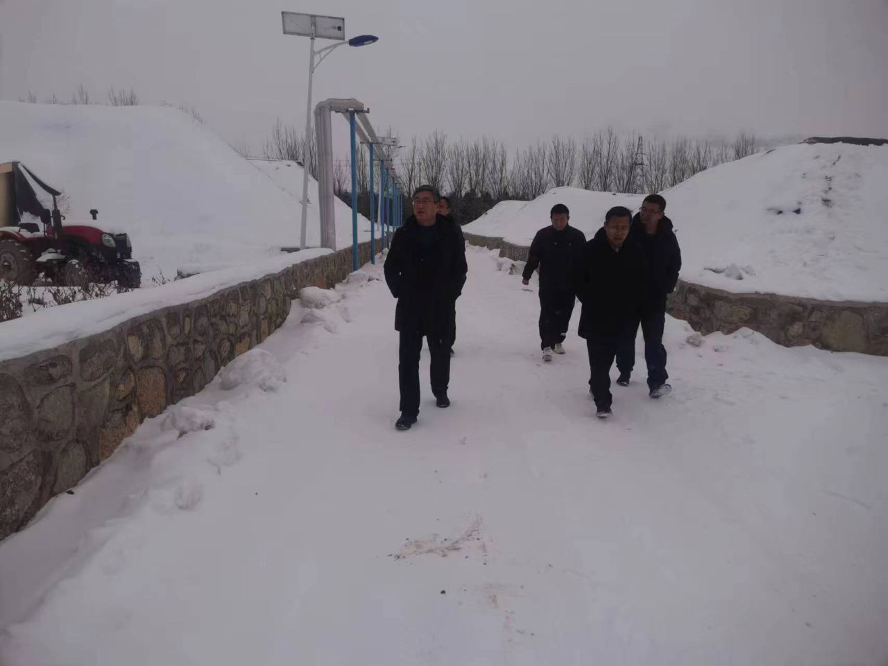 在襄垣县米家坪村日光温室蔬菜生产基地,郭剑青认真了解了集体经济经营状况,详细察看了蔬菜生产情况和大棚除雪情况,仔细询问了应对降雪降温措施的落实情况,进一步要求老旧温室雪前要对棚体进行加固,雪中、雪后及时除雪;设施内的用电设备、用电线路及时检修、维护、更新,消除火灾隐患;及时修补棚膜破洞、裂缝,避免蔬菜受冻、大风揭棚;持续低温弱光情况立即补光增温。