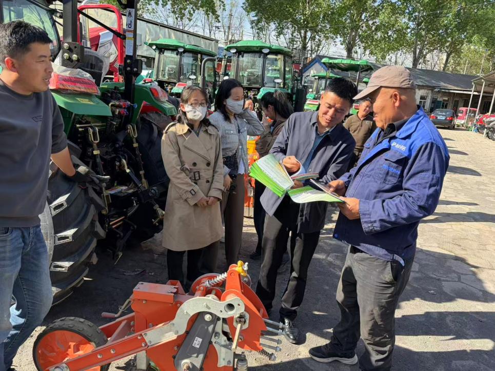 培训现场,拖拉机、旋耕机、精量施肥播种机等机具整齐列阵,专业技术人员逐一演示机具操作流程,重点讲解旋耕机的性能优势与使用要点、精量播种机常见故障与排除及调整使用注意事项,培训期间,同步开展了农机安全生产宣传,培训了农机安全生产知识、操作规程、隐患排查等内容。